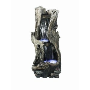 Rain forest waterfall collection with this 41-inch tall fountain with LED lights. Fiberglass fountains utilizes strong geometric designs for clean, crisp appeal. These generously sized fountains have the look of natural tree bark but with the strength and durability of fiberglass. Multiple streams of flowing water create a relaxing and meditative atmosphere. This fountain may be placed indoors or outdoors. Includes: Pump and all necessary parts included for easy assembly and operation. Fountain weighs 47-pound. Measures 18-inch length by 16-inch width by 41-inch height.