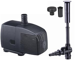 Create a beautiful fountain display in your koi pond or water garden with this all-in-one pump and fountain kit. Comes with 3 different nozzles to create unique display patterns. Also includes a diverter valve to flow water to a spitter or small waterfall. The totally encapsulated mag drive motor is maintenance free and built to last. Ceramic pump shaft helps prolong pump life. Includes 33' AC power cord.