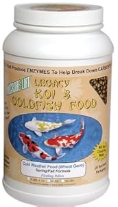 Floating pellets for feeding 3 days per week. Contains stabilized Vitamin C. Will not cloud water. Feed your pond fish Legacy Cold Weather Food (Wheat Germ) during the colder weather periods of spring and fall when nighttime temperatures can go below 55-Degree F (13-Degree C). When pond water temperatures drop, fish require a highly digestible cool-water diet. Our Legacy Cold Weather Food formula is made with lesser amounts of protein and wheat germ which is easily digested and also contains a higher level of fats.