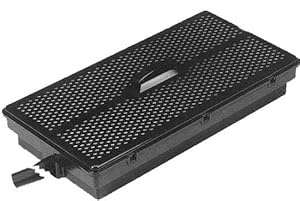 12" x 24" filter box with locking handle that provides easy access for cleaning. Includes carbon and polyester filter media pads. The polyester filter traps debris as it is drawn into the filter. The finer, carbon-impregnated material filters the water further. Activated carbon helps eliminate unwanted colors and odors. Connects to inlet side of pump with 1" tubing and fittings provided. For use with 950 to 1800 gallon per hour pumps with intakes that accept 1" diameter tubing. Pump is not included. For ponds up to 1000 gallons with light fish population.