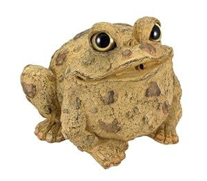 The Toads Of Toad Hollow are a collection of statues that add whimsy and imagination to your home or garden. This garden pond spitter toad is a great way to aerate your pond. All he needs is a pump and a piece of tubing to attach to the connector on the back. Made of cold cast resin, the toad measures 7 inches tall, 10 inches wide and 8 1/2 inches deep. He's hand-painted, with a natural tan finish, and shows great detail. He makes a wonderful gift for any frog lover.